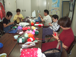 一日でできる、コサージュ、クリスマスグッズ帽子等を編みます。みなさん一生懸命でした。